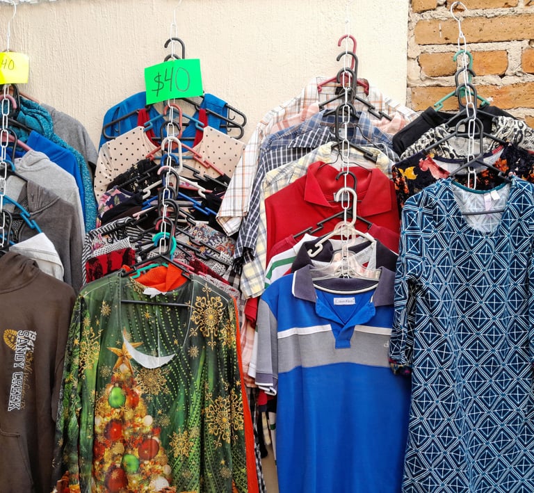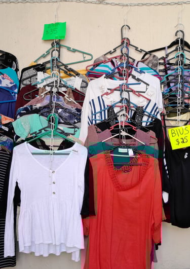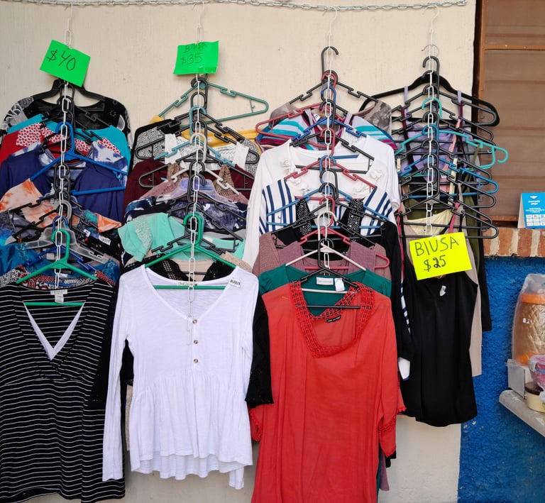Ofrecemos en su mayoría ropa de paca de mujer seminueva y nueva.