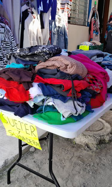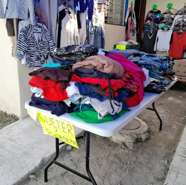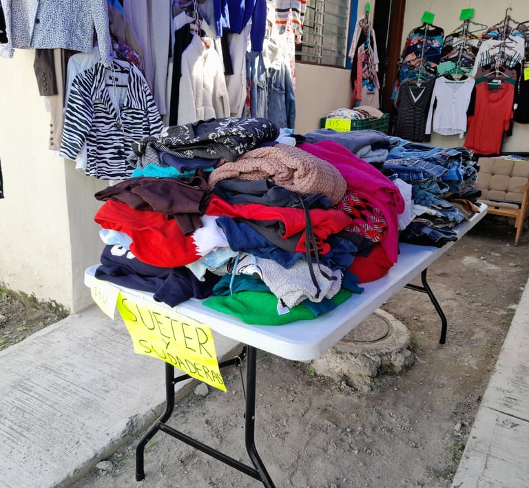 Por el momento solo contamos con playeras y sueteres de hombre y pocos pantalones, la ropa en su mayoría es para mujer.